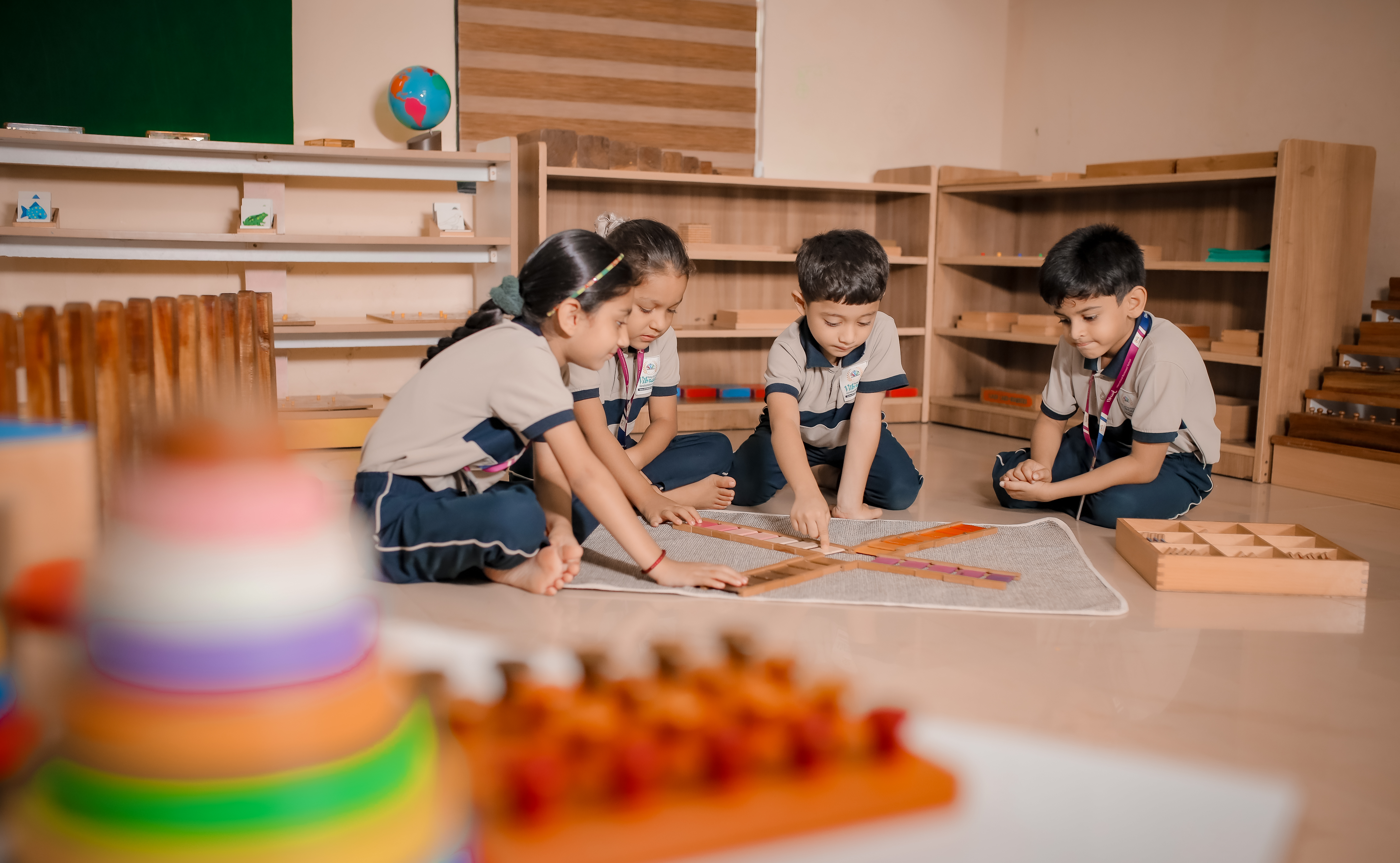 At Vibrant International Montessori, we believe in nurturing young minds to become independent, creative, and compassionate individuals. Our Montessori environment is designed to provide a rich and engaging experience for children aged 3 to 6 years. We are committed to fostering a love of learning and guiding children on their journey of exploration and discovery.